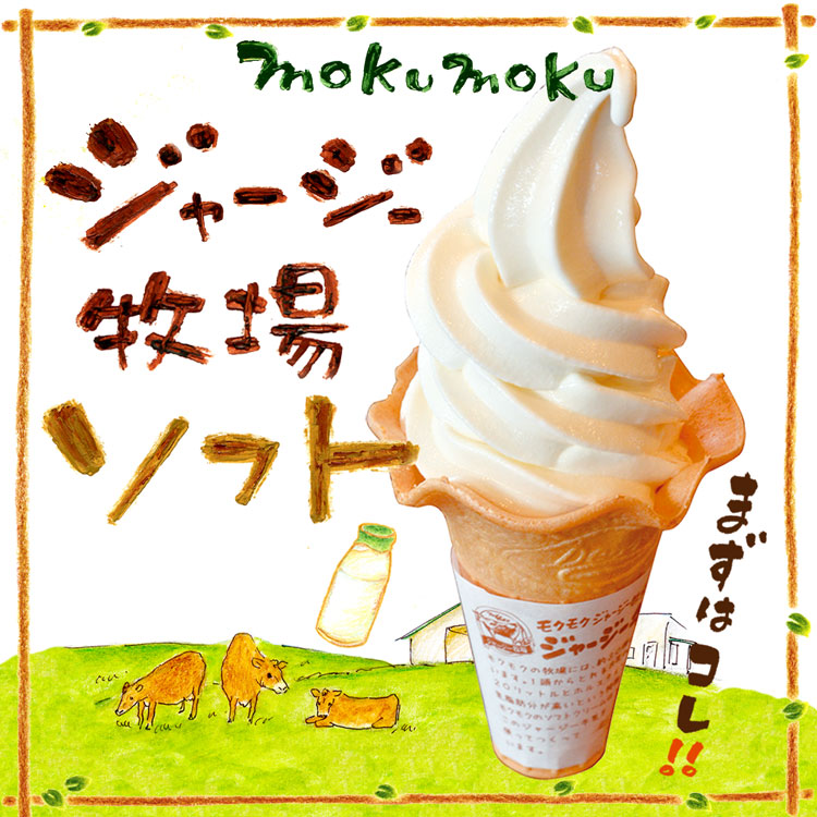 人気No.1のモクモク牧場のジャージーミルクを使ったソフトクリーム。ジャージーミルク特有の乳脂肪分の高さと濃厚なコクを存分に生かしました。