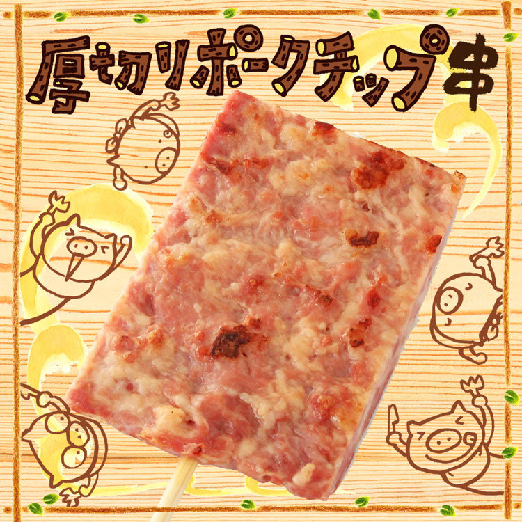 あらびきのジューシーな食べ応えと特製スパイスの旨みにおなかも大満足な「ポークチップ」の厚切りステーキです。赤身と脂身のバランスと特製スパイスの濃厚な味わいがたまりません。