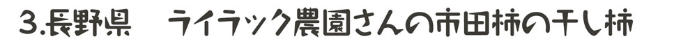 今回はそんな市田柿をりんご農家のライラック農園さんからご紹介頂きました。そのまま食べてもよし、刻んでヨーグルトなどに入れても良しの市田柿、ぜひ一度ご賞味ください。