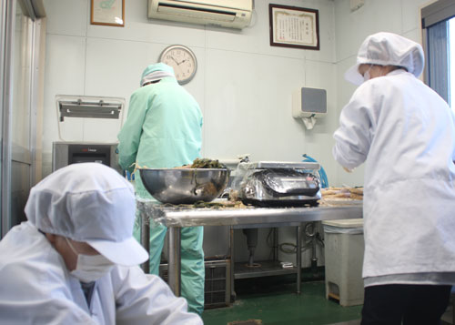 製造されているのは、三重県松阪市に位置する「八重田ファーム」さんです。利用者さんと職員さんで農作物の生産や加工品を製造されています。利用者さんの主体性を尊重し、必要最低限のサポートのみ行うことを念頭においており、利用者さん同士で会話しながら役割分担して作業されている姿も見られました。