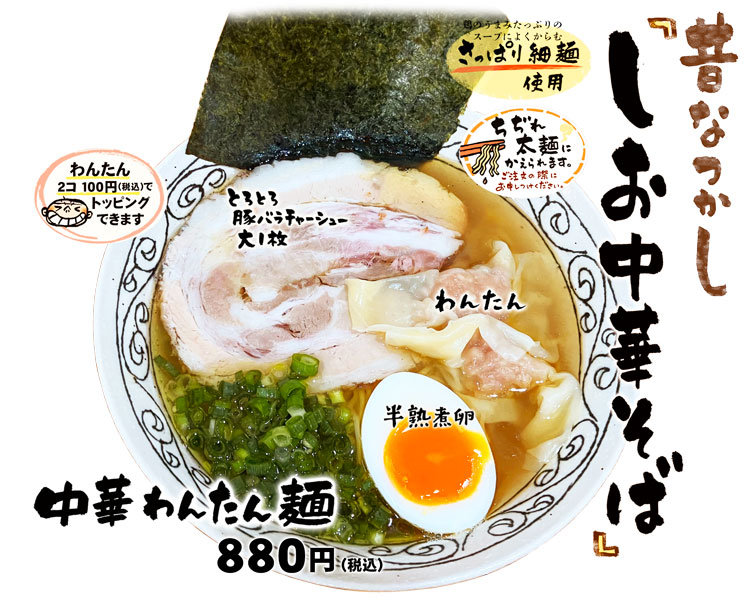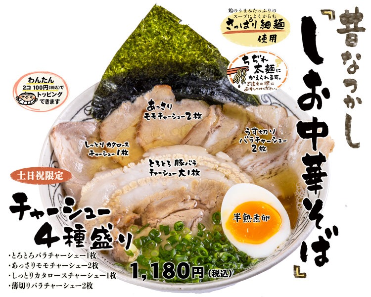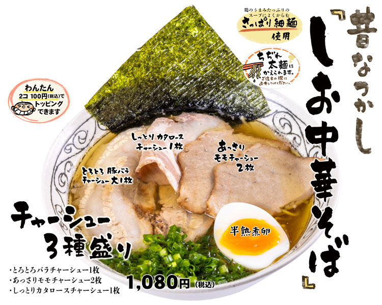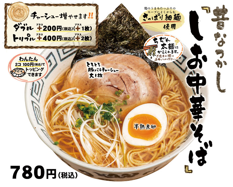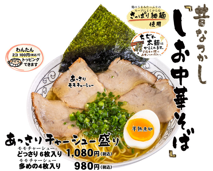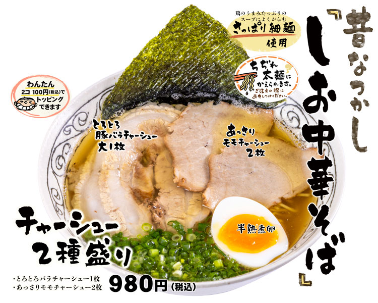 昔なつかし しお中華そば あっさりチャーシュー盛り