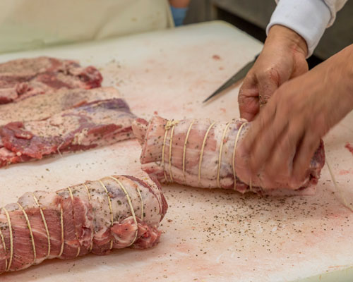 モクモクハム工房でつくるチャーシューは国産豚バラ肉を4時間かけた煮込みでとろとろに仕上げています。