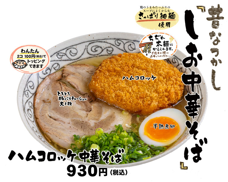 昔なつかし しお中華そば ハムコロッケ中華そば
