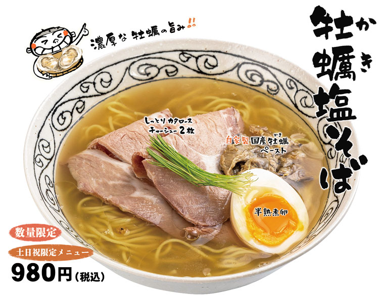 自家製の国産牡蠣のペーストをスープに混ぜ合わせると、すっきり塩味と濃厚な牡蠣の風味がベストマッチする一杯です。つるりつるりと、だけれども濃厚に、味わって頂けます。
