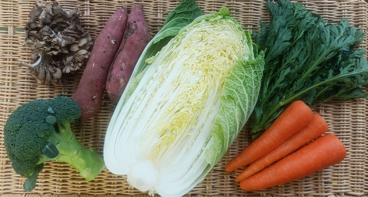 おまかせ野菜セットは、モクモクの直営農場および地元の農家さん、そして遠方の農業仲間さんの野菜を5~6品組み合わせたセットです。