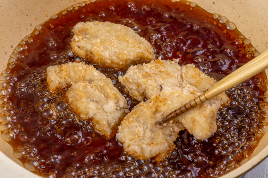 ②揚げ焼きする。