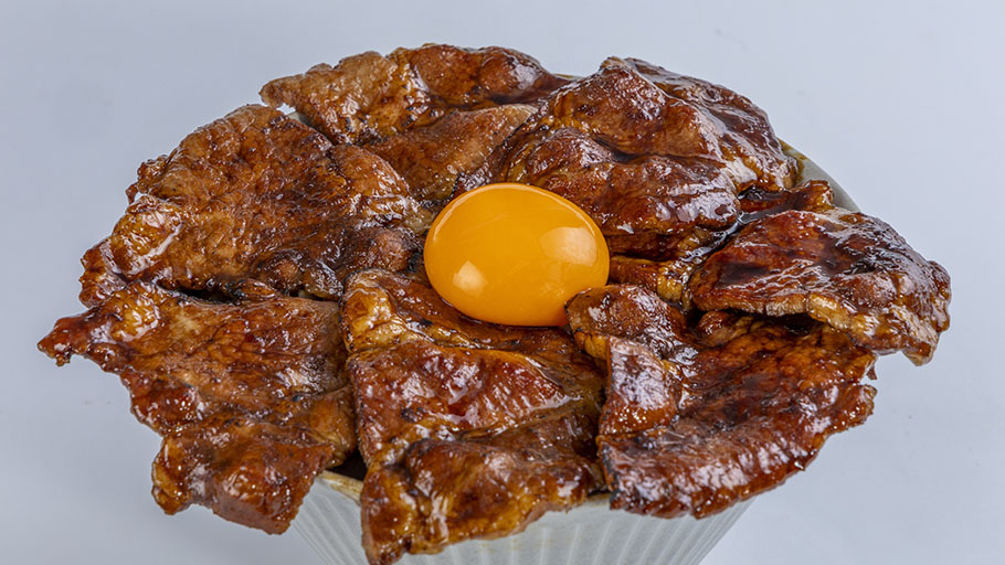 豚カタロースの旨みと、程よいやわらかさ、タレの絡み具合を考え、こだわりの4mmスライスに仕上げています。
