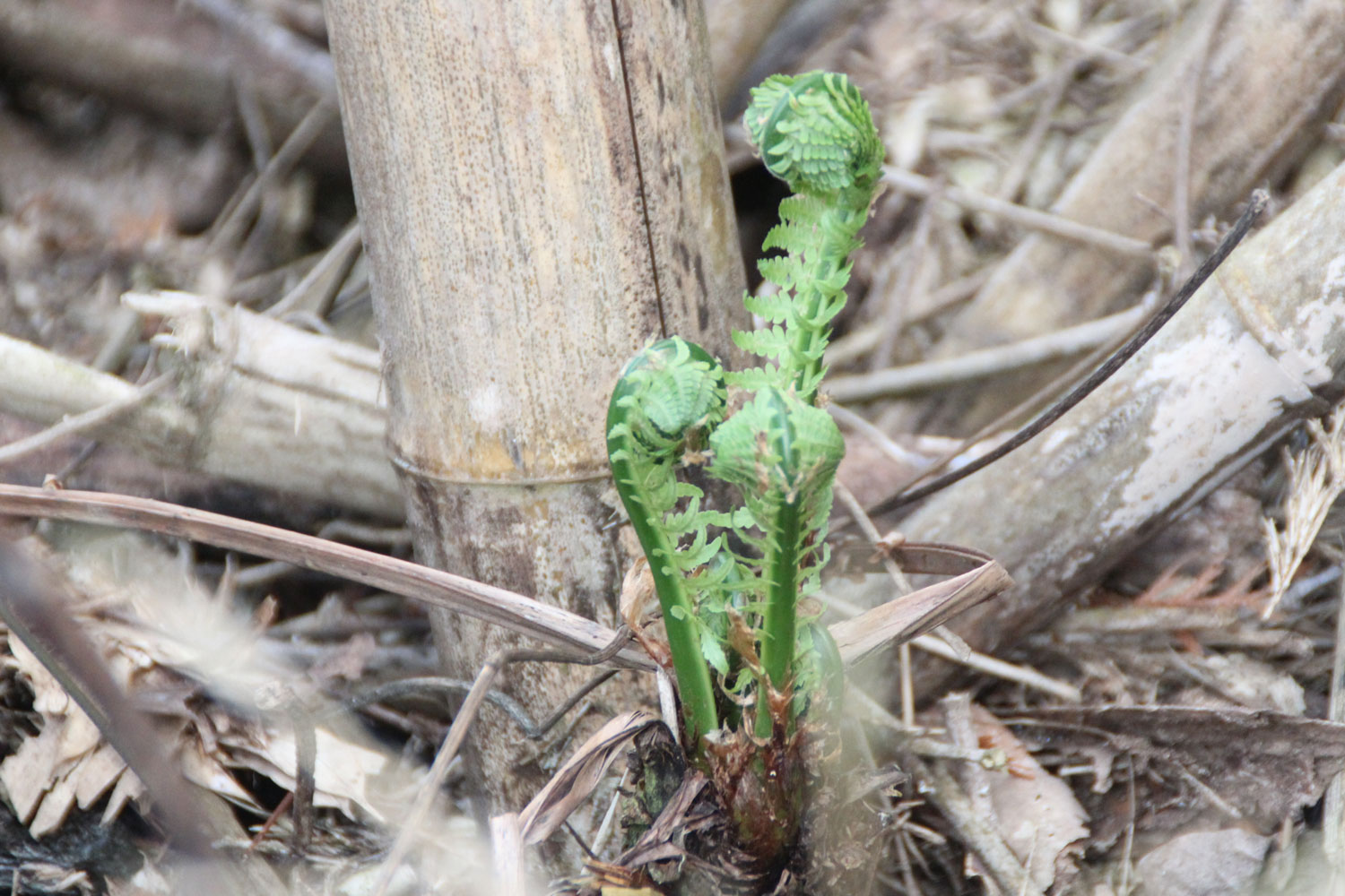 写真のようなこごみを始めとして、これからの2週間ほどで収穫を終えます。