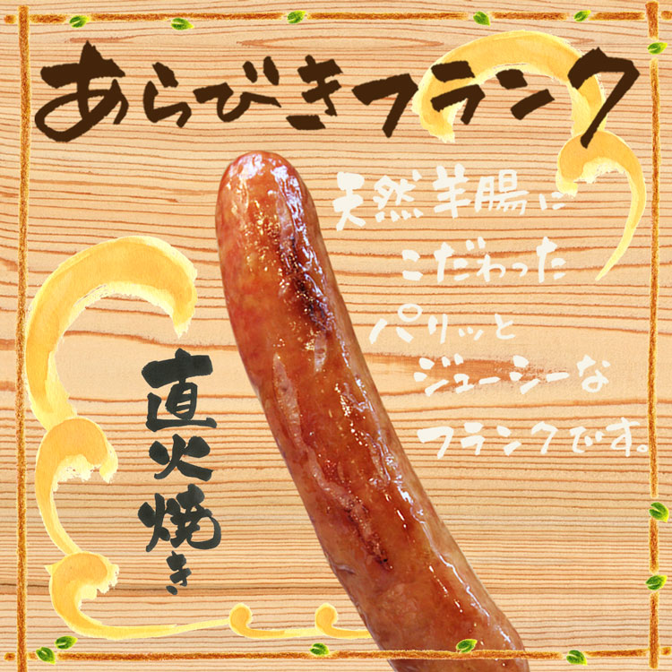創業当時からたくさんの人に愛された王道「あらびきフランク」。旨みのあるウデ肉・モモ肉の赤身と脂身を粗く挽いて練ったソーセージ生地に、上質で甘みのあるロース肉・バラ肉の脂身をざっくりと混ぜて豚腸につめ、スモークで仕上げました。