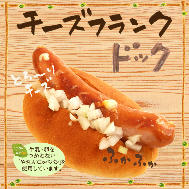 どこを切ってもチーズが顔を出す「チーズたっぷビアフルト」を、乳・卵不使用の「やさしいホットドッグ用パン」に挟みました。チーズのコクと玉ねぎの甘みが肉の旨みを最大限に引き出しています。