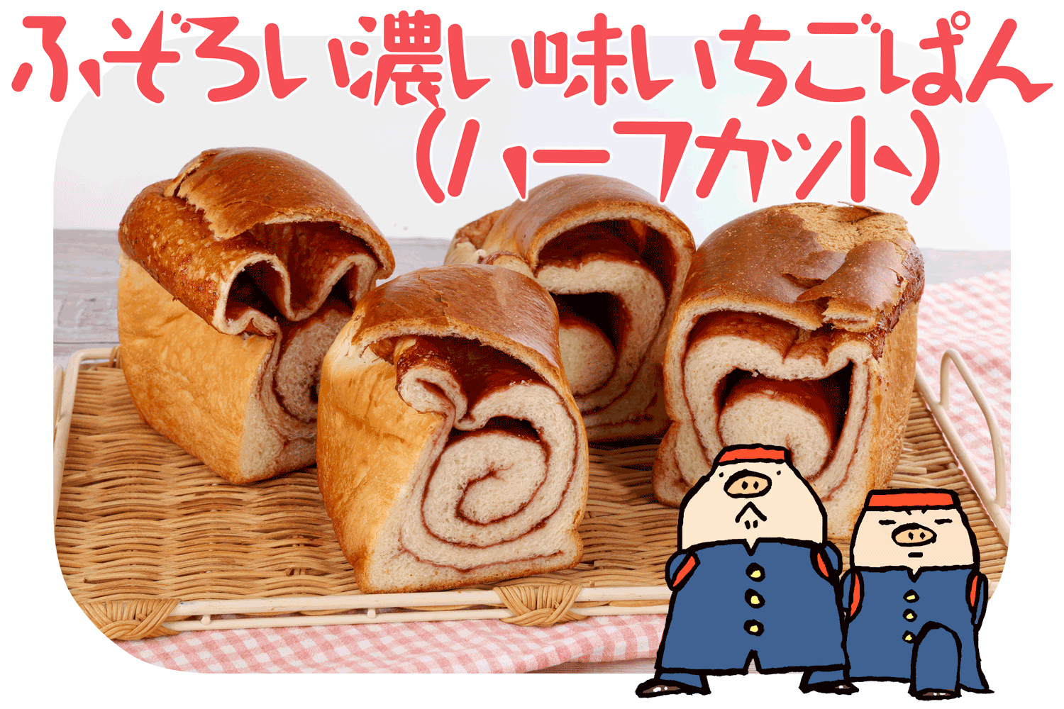 いちごジャムがたっぷり入った美味しさの反面、正規品として販売できないと判断される『濃い味いちごぱん』が数多くあり、今回の月刊モクモクでお求めやすいハーフサイズで取り扱うこととなりました。