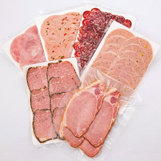 赤や緑のクリスマスカラーのパプリカリオナや、黒胡椒の香りが効いたペッパーポークハムなど、6種類のハムスライスをセットにしました。