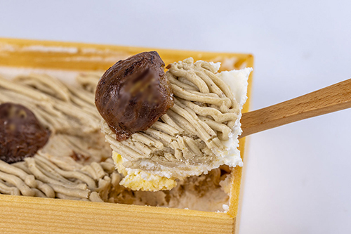 ふわふわスポンジケーキに、生クリーム、和栗のクリームを重ねました。