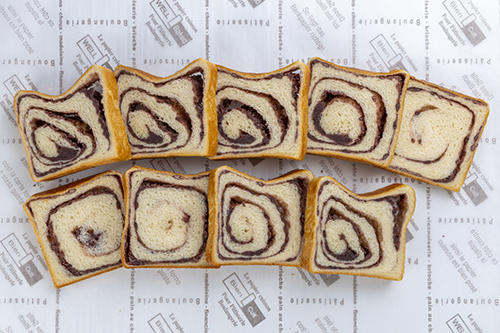 パン生地をなるべく均一に長く伸ばす工程や、つぶあんを適度な厚みに均一に伸ばす工程など技術が必要ですが、一本丸ごと一気にあんを巻き込むことで、これまで生地と生地のつなぎ目にできてしまっていた「あんのない部分」がなくなり、どこを切ってもつぶあんが出てくるあん食ぱんに生まれ変わりました。