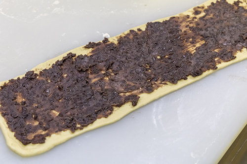 ②生地の端までしっかりつぶあんを伸ばす。