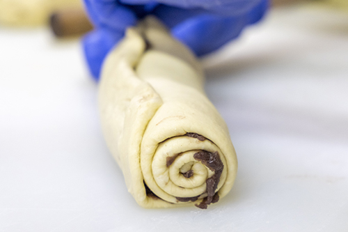 ④一本巻き巻き上がり! このままパンの型に入れて焼き上げる。