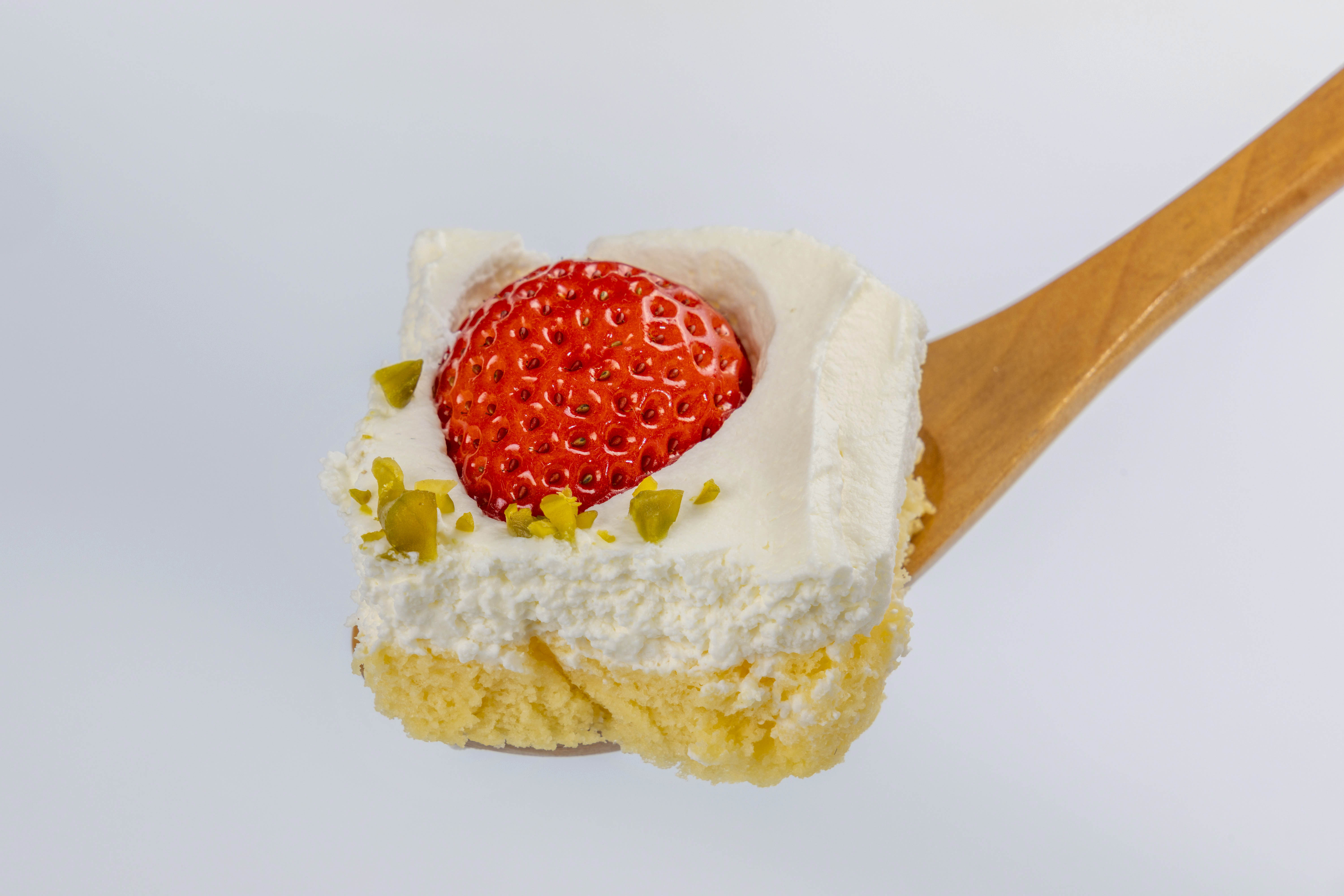甘酸っぱいいちごの酸味と、軽やかなクリームとスポンジの相性はバツグン。思わずペロリと食べてしまえるほど!