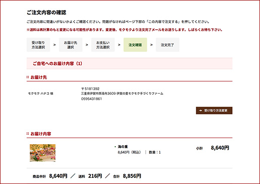 これでご注文は完了です。ご注文内容はご登録いただいたメールアドレスにもお送りしております。